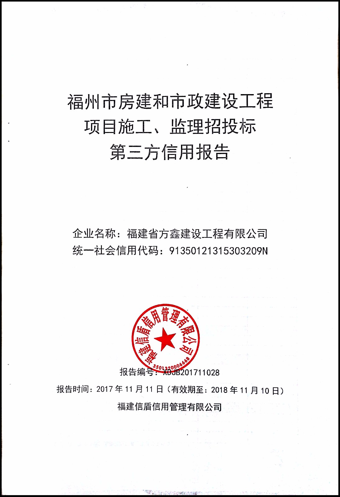 福建省方鑫建設工程有限公司 XDJB201711028