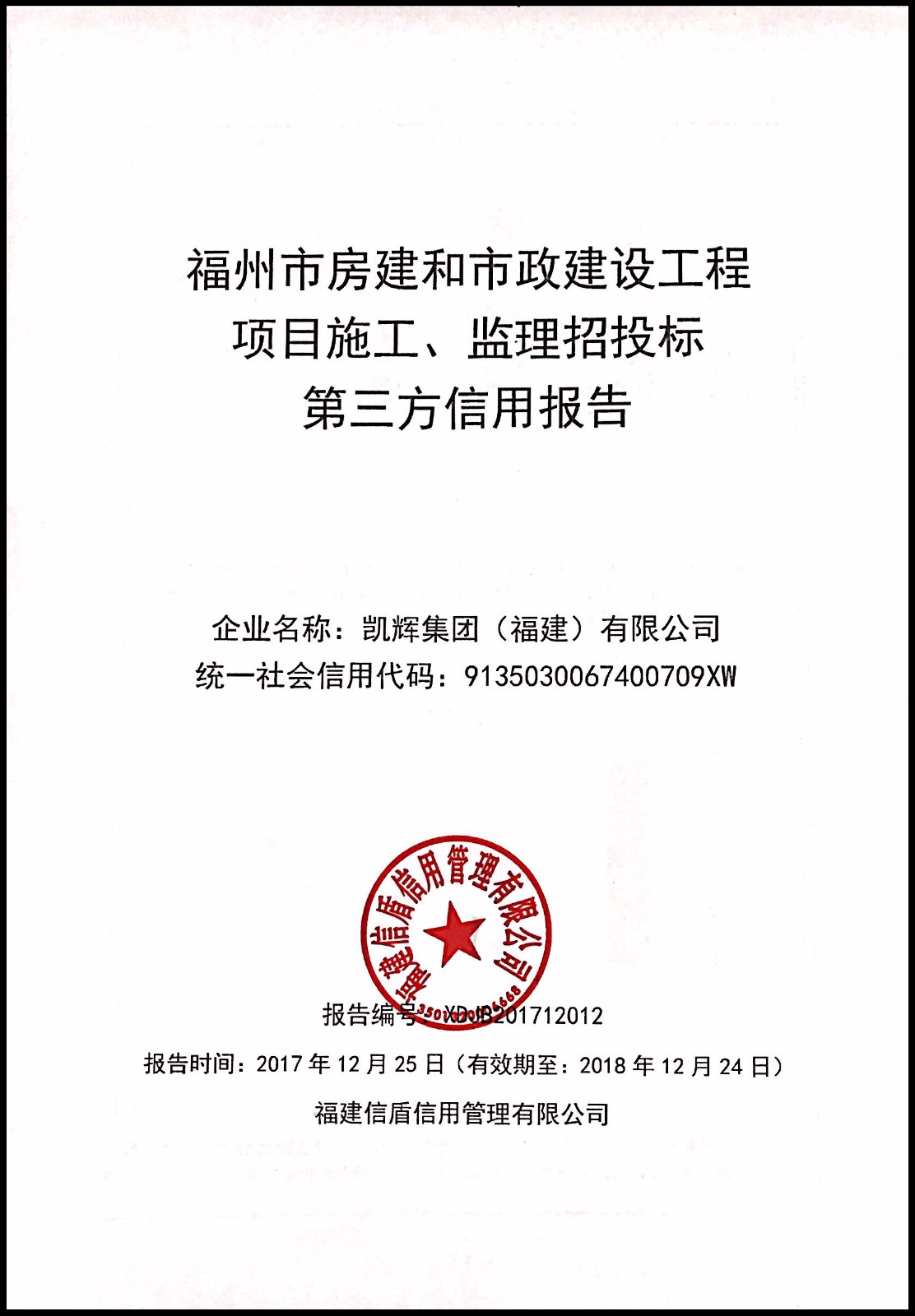 凱輝集團(福建)有限公司 XDJB201712012